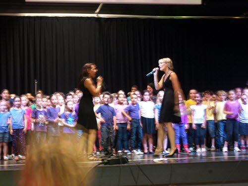 Le spectacle s’est terminé avec une note émouvante quand Mme Taillard nous a annoncé le départ de Mme Thuret. Et c’est avec une grande joie que nous avons appris qu’elle ne partait pas loin. En effet, nous aurons l’honneur de la retrouver en tant que directrice de l’école Le Petit Prince. Mme Monsellier nous quitte également pour une autre école. Félicitations à toutes les deux.